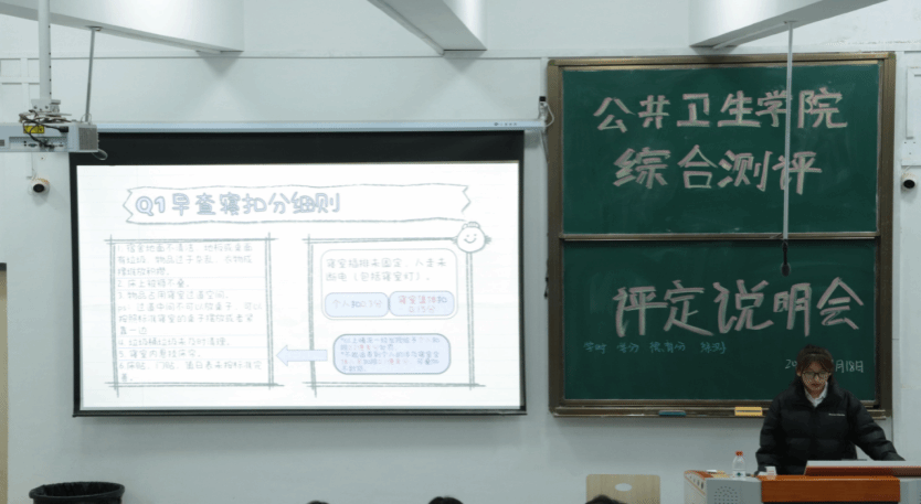 各部门按分工依次开展专业讲解,各展所长。科创部率先厘清学时、学分、综测的核心区别,系统讲解综合测评评定的全流程,同时详细解读了科研、竞赛加分及查课扣分细则;秘书处对院级、校级活动及学生干部加分细则进行了详细拆解,明确了各项核算规则与特殊情况的判定标准;事务部聚焦寝室管理相关要求,具体说明了查寝流程与寝室扣分标准;文体部则围绕文艺、体育活动展开介绍,讲解了活动参与流程及对应的加分、加学时方案。各部门讲解条理清晰、重点突出,从不同维度为在场学生梳理了综测评定的核心要点,确保了每一位参会学生都能全面、准确地掌握综合测评的各项评定要求。